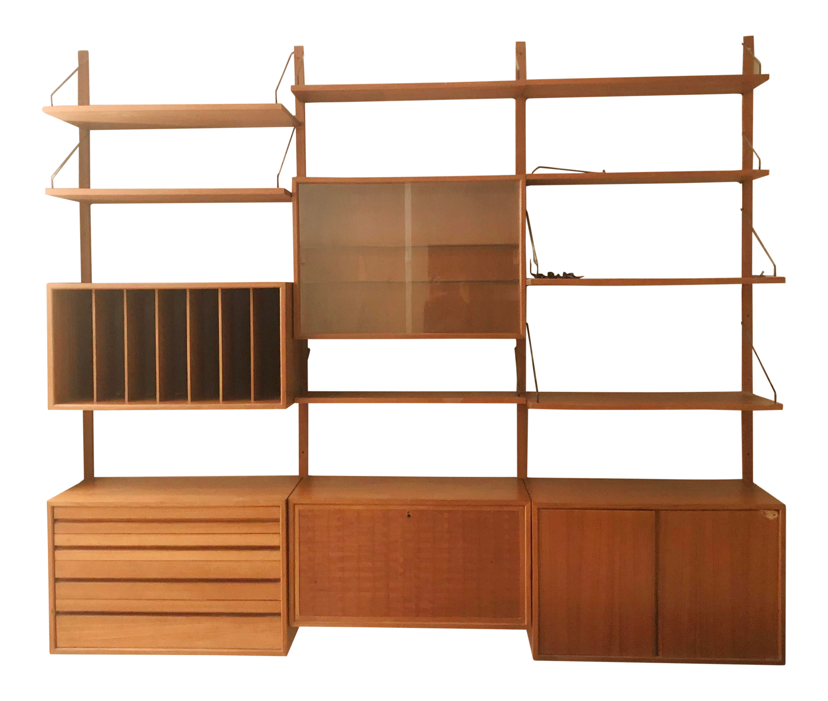 Mid Century Wall Mounted Shelves By Poul Cado For Royal System Chairish - The solid steel shelf bracket mounts to the wall 2 locations, hidden behind each shelf.